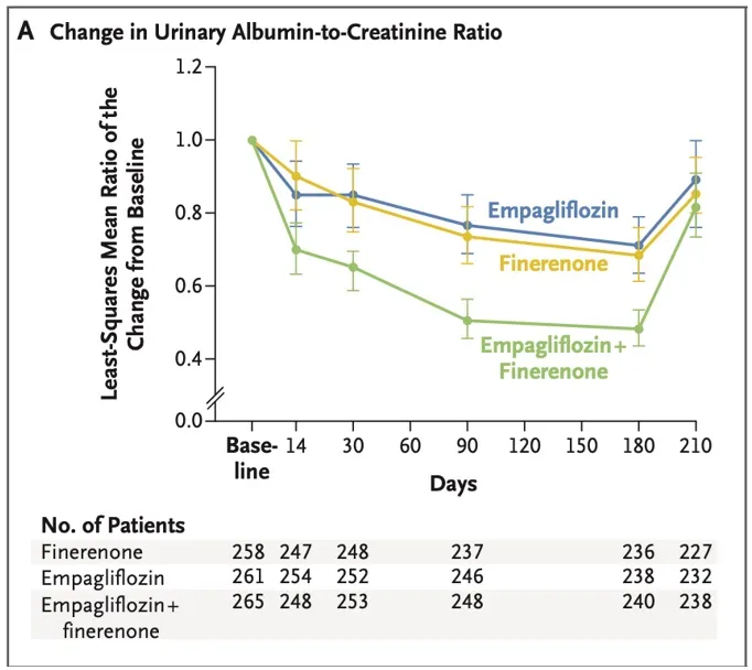 “Começar junto é melhor?”: Finerenona com empagliflozina mostrou efeito aditivo na redução da albuminúria