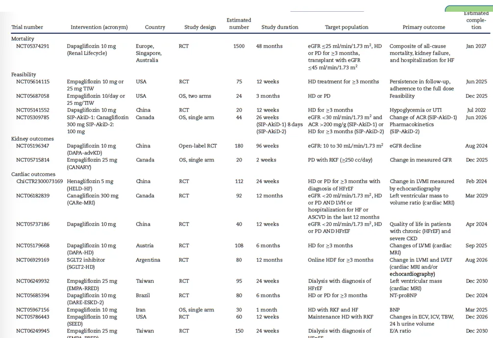 Referência: Minutolo R, Ruotolo C, Conte G, Borrelli S. SGLT2 inhibitors in hemodialysis or peritoneal dialysis patients: rationale and state-of-the-art. Clinical Kidney Journal, 2025. **[Link](https://academic.oup.com/ckj/article/19/1/sfaf350/8323150)**