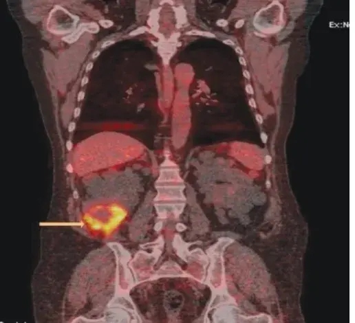Radiografia e TC de tórax mostraram um derrame pleural volumoso a direita (imagem abaixo).